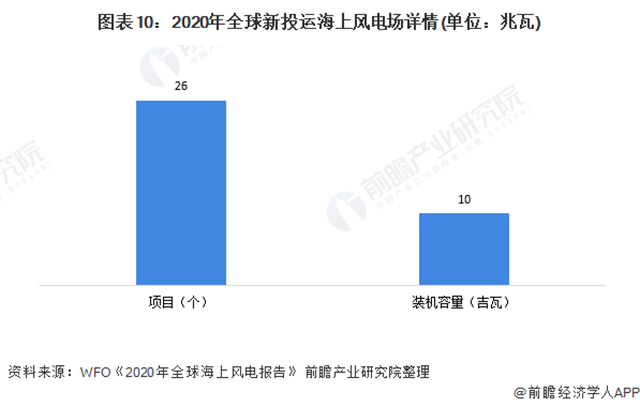 海上風電場方面,截至2020年末,全球共有26個在建海上風電場,容量接近10吉瓦,其中,有接近44%的在建容量來自于中國。