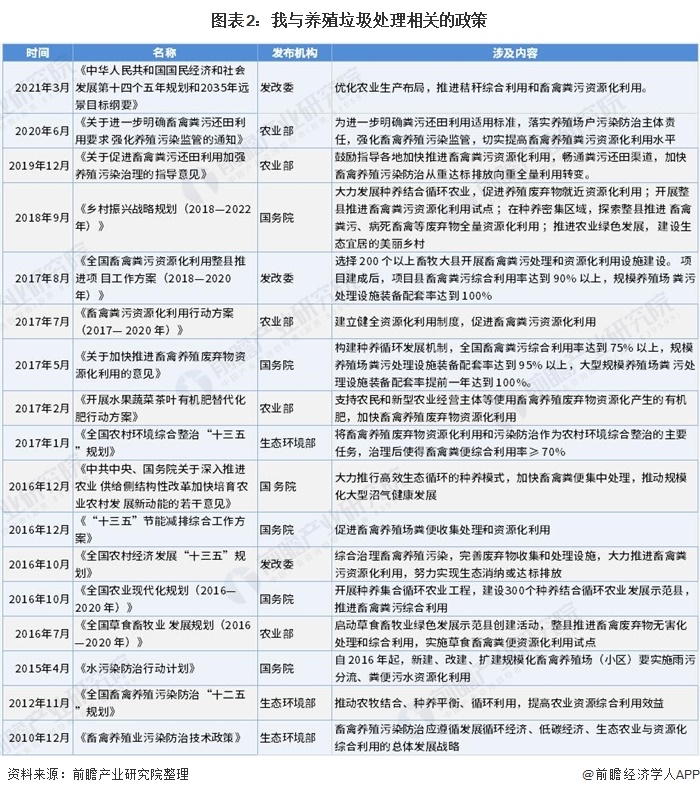 原標(biāo)題:2021年中國(guó)養(yǎng)殖垃圾處理行業(yè)政策匯總與發(fā)展趨勢(shì)分析 能源化與肥料化是主要利用方向