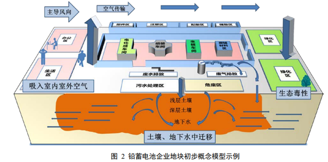 鉛蓄電池企業(yè)地塊初步概念模型示例如圖 2。