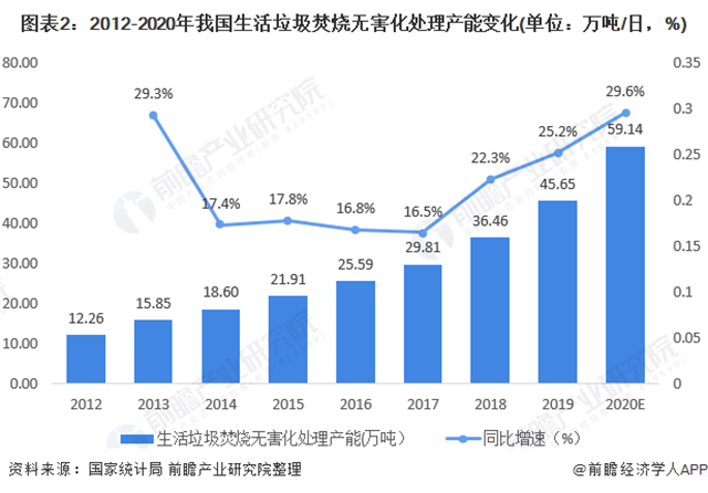 2、市場規(guī)模:垃圾焚燒產(chǎn)能持續(xù)增長,十三五規(guī)?;蜻_(dá)兩千億