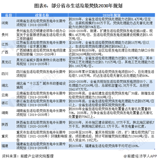 發(fā)改委要求地方政府最晚在2020年3月31日之前編制完成生活垃圾焚燒發(fā)電中長期專項規(guī)劃,未完成的省市未來新建焚燒項目補貼資金由地方政府自行解決。多省力爭在2030年實現(xiàn)原生垃圾“零填埋”。