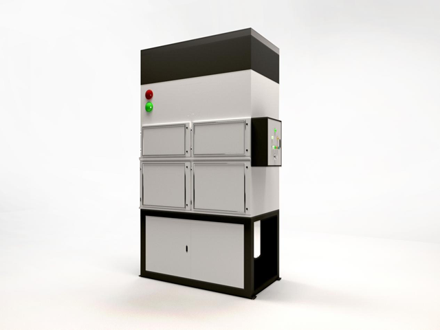 另一款集中式濾筒焊煙除塵設(shè)備在此次環(huán)博會上同樣備受關(guān)注,吸引眾多參展觀眾前來參觀。這款集中式濾筒焊煙除塵設(shè)備可在離心風(fēng)機(jī)的負(fù)壓作用下,粉塵從排氣口進(jìn)入后,通過風(fēng)管集中后進(jìn)入粉塵凈化器,在擋風(fēng)板的作用下,氣流向上流動,流速降低,部分大顆粒粉塵由于慣性力的作用被分離出來落入灰斗。細(xì)粉塵進(jìn)入凈化室,當(dāng)通過專用粉塵防靜電聚脂纖維濾芯時,粉塵被阻留在濾筒的外表面,凈化后的氣體經(jīng)濾筒口進(jìn)入上箱體,從風(fēng)機(jī)出風(fēng)口排出。