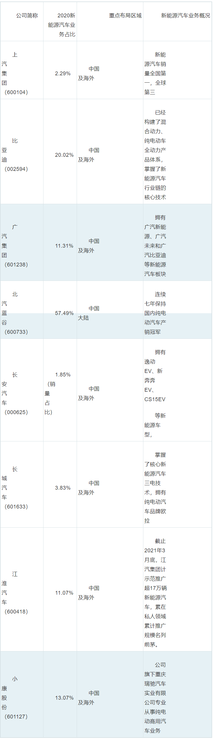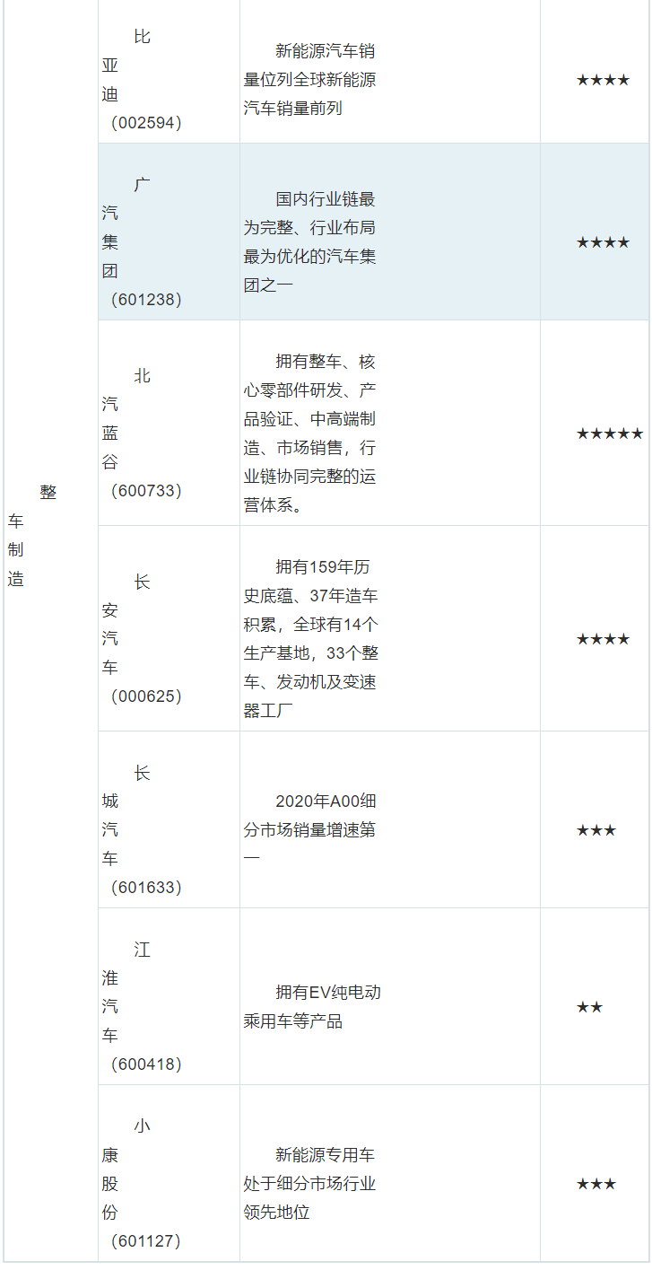 1、新能源汽車行業(yè)上市公司匯總