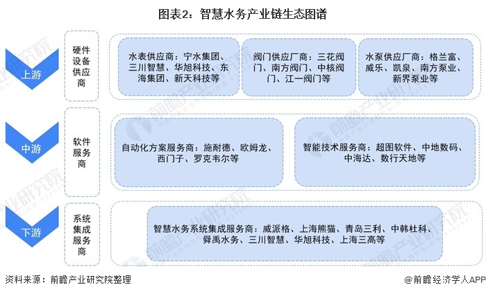 上游的水表供應(yīng)商、閥門供應(yīng)商、水泵供應(yīng)商分別為下游的系統(tǒng)集成服務(wù)商提供水表、閥門、水泵等硬件設(shè)備。