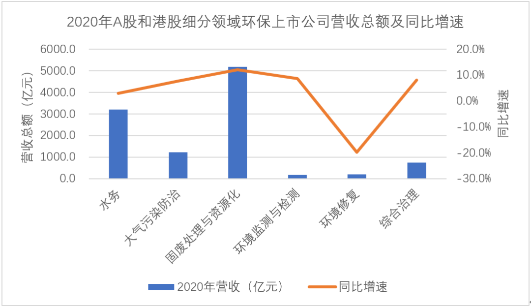 總體來看,2020年環(huán)保上市公司經(jīng)濟(jì)運(yùn)行呈現(xiàn)以下特點(diǎn):1、環(huán)保上市公司總體營收、凈利潤增幅均高于A股平均水平。在前期疫情影響和后期政策助力、市場好轉(zhuǎn)等多重因素影響下,環(huán)保行業(yè)整體實(shí)現(xiàn)了相對(duì)較快的增長,表現(xiàn)出了一定的抗沖擊能力和持續(xù)的發(fā)展?jié)摿Α?/span>2、環(huán)保上市公司整體經(jīng)營情況有所改善。從披露年報(bào)數(shù)據(jù)來看,A股環(huán)保上市公司每股現(xiàn)金流凈額增長95.7%,增幅較上年增加31.1個(gè)百分點(diǎn);平均資產(chǎn)負(fù)債率下降1.7個(gè)百分點(diǎn),資產(chǎn)負(fù)債率維持在合理區(qū)間;每股收益增長11.5%,“賺錢”能力提升。3、各細(xì)分領(lǐng)域經(jīng)營情況差異明顯。水務(wù)領(lǐng)域營收和凈利潤總體平穩(wěn),一些企業(yè)運(yùn)營服務(wù)收入占比增加,部分科創(chuàng)板企業(yè)表現(xiàn)亮眼;固廢領(lǐng)域營收和凈利潤規(guī)模高于其他細(xì)分領(lǐng)域,在無廢城市、垃圾分類、補(bǔ)短板、生物質(zhì)發(fā)電補(bǔ)貼等政策的支持下,固廢企業(yè)特別是垃圾焚燒、環(huán)衛(wèi)相關(guān)企業(yè)營收和凈利潤實(shí)現(xiàn)高速增長;大氣領(lǐng)域雖然營收增長,但是凈利潤下降,傳統(tǒng)領(lǐng)域如工業(yè)除塵甚至是脫硝脫硫,競爭激烈、毛利下降;監(jiān)測領(lǐng)域企業(yè)規(guī)模偏小,但是重視科技研發(fā),一些企業(yè)在營收總額和利潤下降的情況下,仍堅(jiān)持提高研發(fā)投入。4、經(jīng)歷行業(yè)短期波動(dòng)后,一些環(huán)保企業(yè)上市公司開始主動(dòng)調(diào)整經(jīng)營戰(zhàn)略,正在或已經(jīng)走出了經(jīng)營困局,走向更為成熟的發(fā)展階段。有的企業(yè)規(guī)避不必要風(fēng)險(xiǎn),主動(dòng)撤出一些風(fēng)險(xiǎn)較大的項(xiàng)目;有的企業(yè)調(diào)整經(jīng)營方向,運(yùn)營服務(wù)業(yè)務(wù)比例增長。