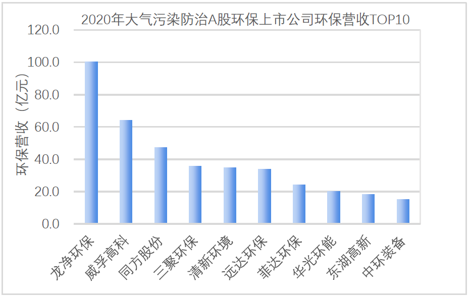 大氣污染防治領(lǐng)域,2020年A股及港股環(huán)保上市公司(24家A股環(huán)保上市公司+4家港股環(huán)保上市公司)實(shí)現(xiàn)營收總額1224.0億元,同比增長7.8%,凈利潤總額58.7億元,同比下滑17.1%,整體獲利能力不及上年。