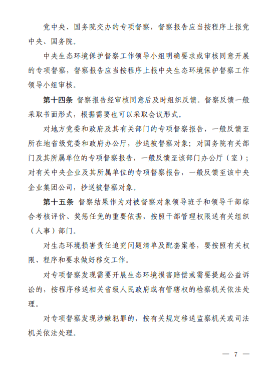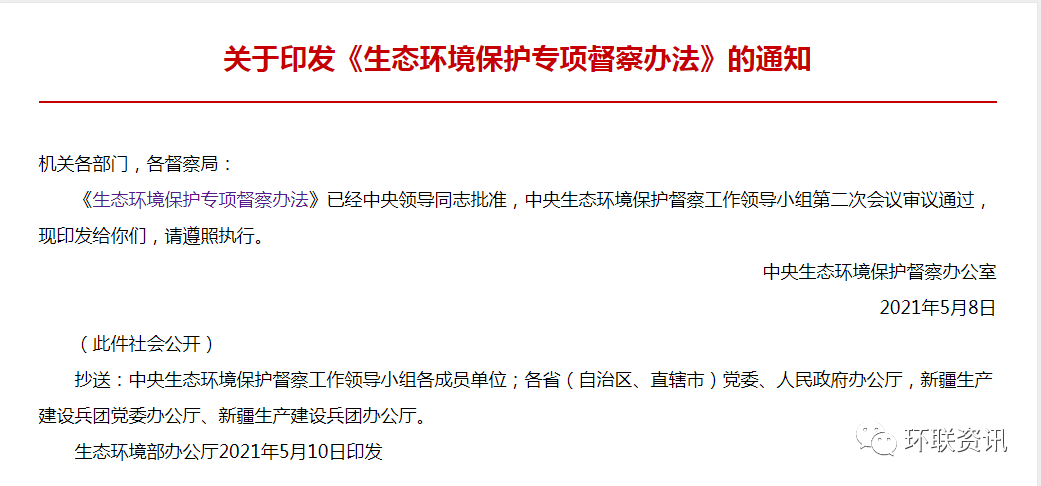 《生態(tài)環(huán)境保護(hù)專項(xiàng)督察辦法》的通知