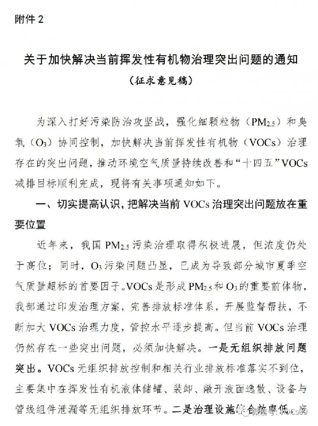 為深入打好污染防治攻堅(jiān)戰(zhàn),強(qiáng)化細(xì)顆粒物和臭氧協(xié)同控制,加快解決當(dāng)前揮發(fā)性有機(jī)物治理存在的突出問題,推動(dòng)環(huán)境空氣質(zhì)量持續(xù)改善,生態(tài)環(huán)境部起草了《關(guān)于加快解決當(dāng)前揮發(fā)性有機(jī)物治理突出問題的通知(征求意見稿)》。要求于2021年6月2日前反饋。關(guān)于征求《關(guān)于加快解決當(dāng)前揮發(fā)性有機(jī)物治理突出問題的通知(征求意見稿)》意見的函