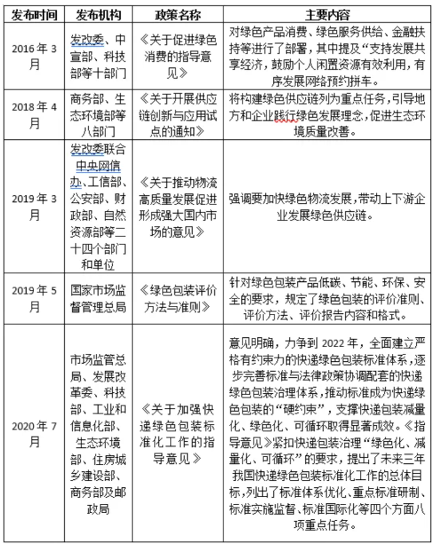 近年來,對于電子商務(wù)行業(yè),我國政府部門發(fā)布系列相關(guān)政策,指引和倡導(dǎo)電商企業(yè)在綠色消費、綠色包裝、綠色物流、綠色供應(yīng)等方面做出行動來減少碳排放量。主要政策梳理如下: