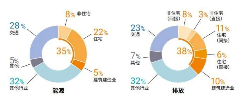 2019年全球建筑建造行業(yè)終端能耗和碳排放占比