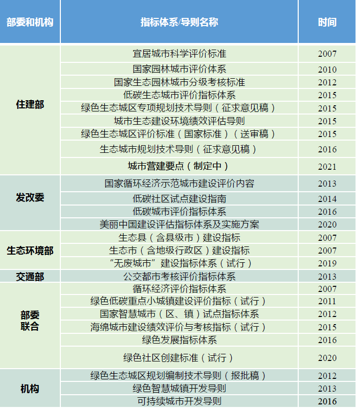 2007年以來(lái),國(guó)內(nèi)相關(guān)部委和機(jī)構(gòu)已經(jīng)制定和發(fā)布多項(xiàng)相關(guān)標(biāo)準(zhǔn)、評(píng)價(jià)體系、技術(shù)導(dǎo)則、建設(shè)指南、指標(biāo)體系等,其中,部分尚在征求意見(jiàn)或試行過(guò)程中。