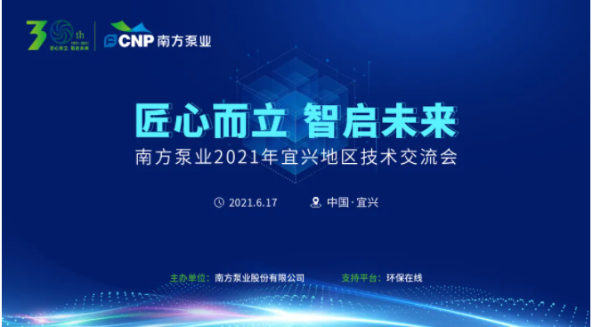 鎖定“匠心而立 智啟未來”南方泵業(yè)2021年宜興地區(qū)技術(shù)交流會(huì),鎖定宜興環(huán)保城,鎖定環(huán)保在線,6月17日,咱們不見不散!