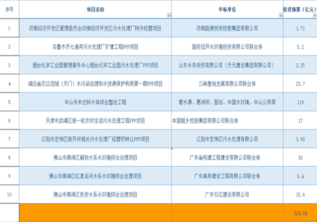 6月以來,10個(gè)項(xiàng)目,投資額超224億,污水處理市場前景可觀。