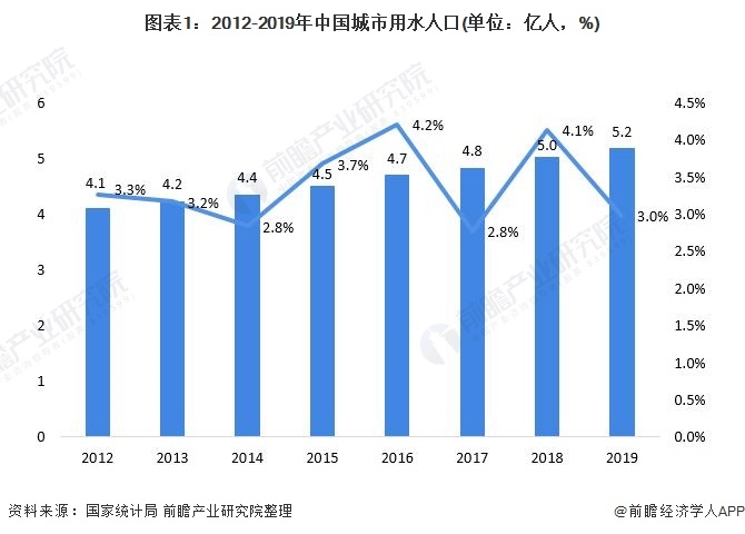 改革開放以來,隨著中國城市化進(jìn)程的加快,我國城市用水人口總量將持續(xù)上升,水務(wù)行業(yè)的重要性日益凸顯。據(jù)國家統(tǒng)計(jì)局?jǐn)?shù)據(jù)顯示,自2012年起我國城市用水人口穩(wěn)健增加,截至2019年底,我國城市用水人口達(dá)5.18億人,同比增長2.98%。