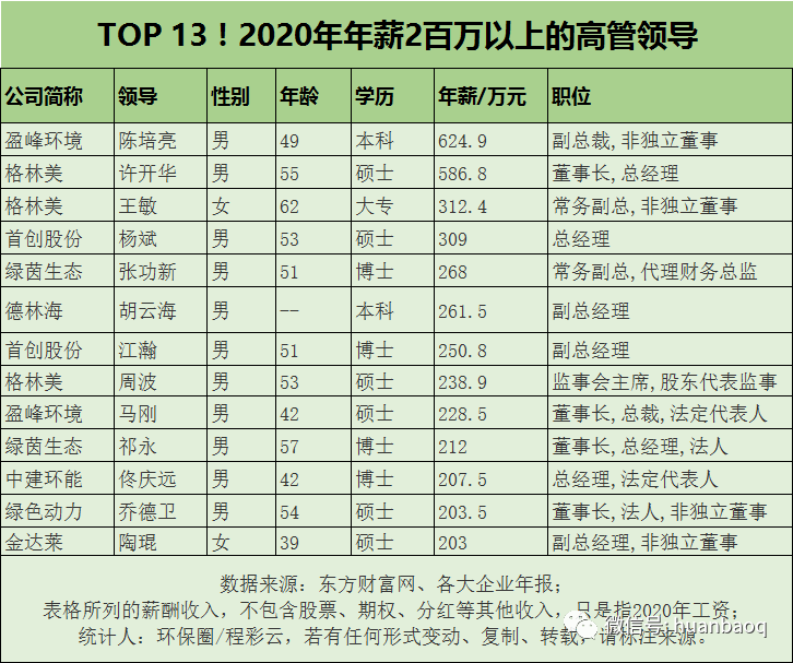 也就是說(shuō),從平均水平上看,環(huán)保企業(yè)高管的年薪已經(jīng)達(dá)到“百萬(wàn)級(jí)”了。