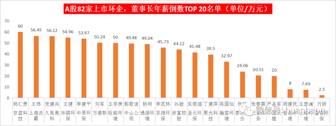 圖四:A股82家上市環(huán)企,董事長(zhǎng)年薪倒數(shù)TOP20