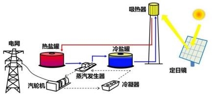 圖3: 塔式太陽(yáng)能發(fā)電系統(tǒng)原理