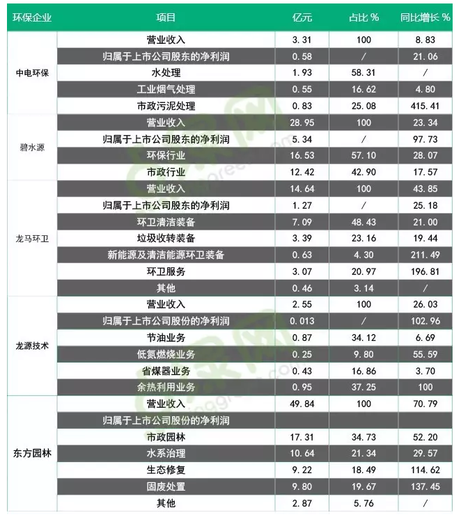 以水環(huán)境治理、固廢處理和煙氣治理的中電環(huán)保上半年實(shí)現(xiàn)營業(yè)收入為3.31億元,較去年同期增長8.83%;實(shí)現(xiàn)歸屬于上市公司股東的凈利潤0.58億元,較去年同期增長21.06%。