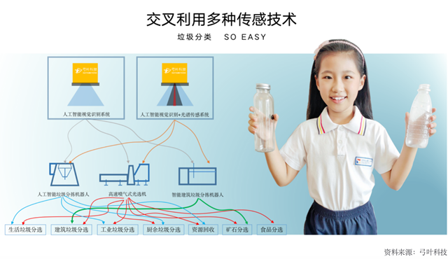 除了將固廢大數(shù)據(jù)庫、云端、多傳感器融合技術(shù)、驅(qū)控一體技術(shù)、AI識別技術(shù)集合于一體的人工智能垃圾分揀機(jī)器人,弓葉科技也將服務(wù)綜合運(yùn)用于循環(huán)經(jīng)濟(jì)產(chǎn)業(yè)的其他環(huán)節(jié),構(gòu)建以AI和大數(shù)據(jù)驅(qū)動的全產(chǎn)業(yè)鏈落地,在固廢回收領(lǐng)域,實(shí)踐高效減碳,助力固廢處理智能化、數(shù)字化和自動化轉(zhuǎn)型升級。