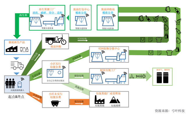 值得一提的是,在十二五、十三五期間,已經(jīng)涌現(xiàn)出一批擁有“綠色+產(chǎn)業(yè)”儀式的科技驅(qū)動型企業(yè),專注于循環(huán)經(jīng)濟(jì)全產(chǎn)業(yè)鏈的資源回收利用,運(yùn)用人工智能、大數(shù)據(jù)等前沿技術(shù)和“互聯(lián)網(wǎng)+”模式與傳統(tǒng)綠色產(chǎn)業(yè)有機(jī)融合,在高價(jià)值固廢的前端回收、中段分揀、末端能源重造等環(huán)節(jié)大大提升效率。