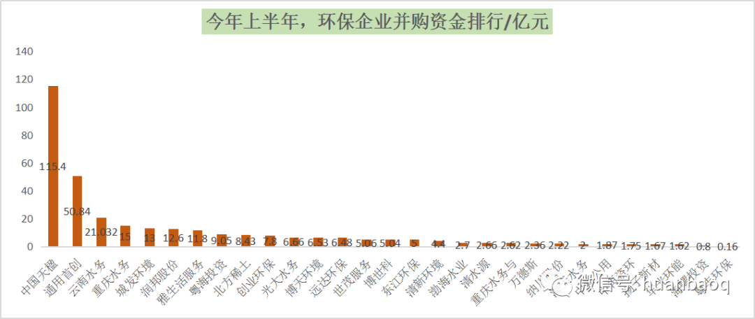 圖三:今年上半年環(huán)保企業(yè)并購資金排行
