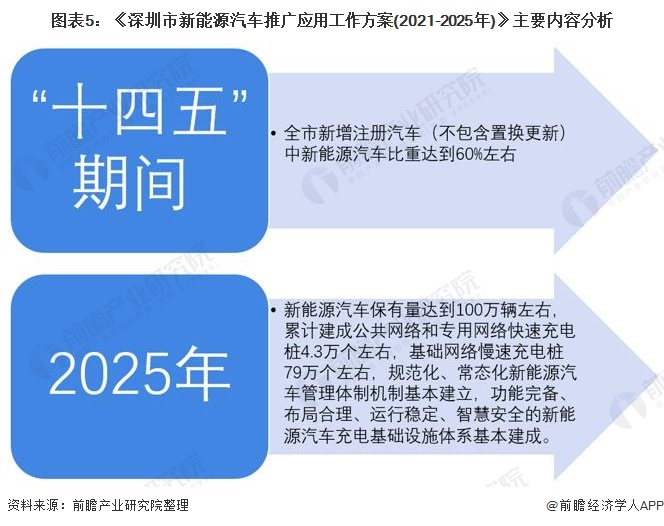 為推動(dòng)新能源汽車的發(fā)展,深圳市做出了明晰的發(fā)展規(guī)劃。2021年3月頒布《深圳市新能源汽車推廣應(yīng)用工作方案(2021-2025年)》,政策表明“十四五”期間,全市新增注冊(cè)汽車(不包含置換更新)中新能源汽車比重達(dá)到60%左右,至2025年,新能源汽車保有量達(dá)到100萬輛左右,累計(jì)建成公共網(wǎng)絡(luò)和專用網(wǎng)絡(luò)快速充電樁4.3萬個(gè)左右,基礎(chǔ)網(wǎng)絡(luò)慢速充電樁79萬個(gè)左右,規(guī)范化、常態(tài)化新能源汽車管理體制機(jī)制基本建立,功能完備、布局合理、運(yùn)行穩(wěn)定、智慧安全的新能源汽車充電基礎(chǔ)設(shè)施體系基本建成。