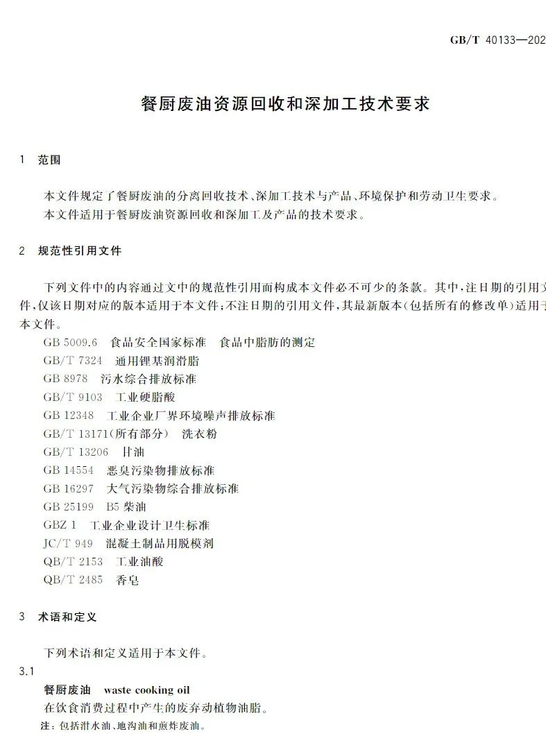 喜報!朗坤參與起草的《餐廚廢油資源回收和深加工技術(shù)要求》國標(biāo)正式發(fā)布