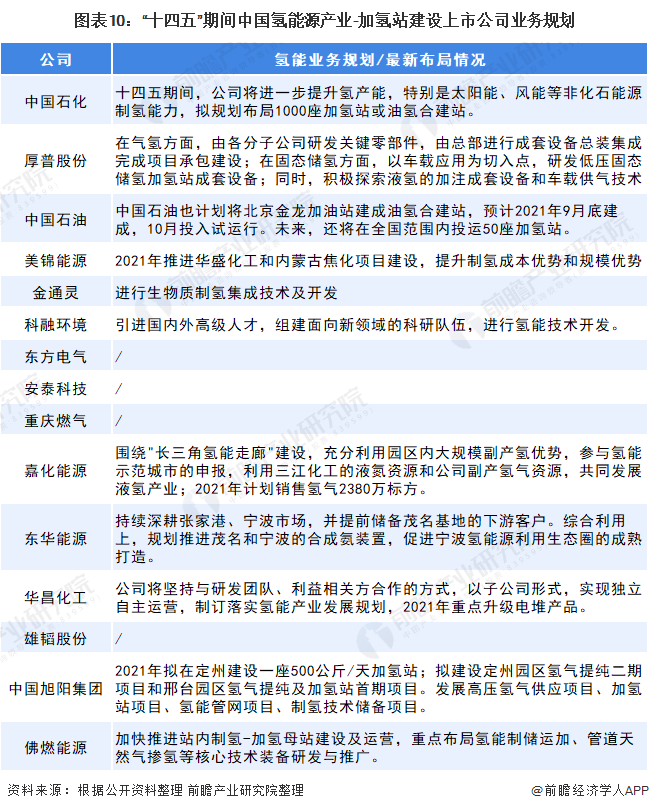 4、氫能源產(chǎn)業(yè)-加氫站建設(shè)上市公司氫能業(yè)務(wù)規(guī)劃對(duì)比