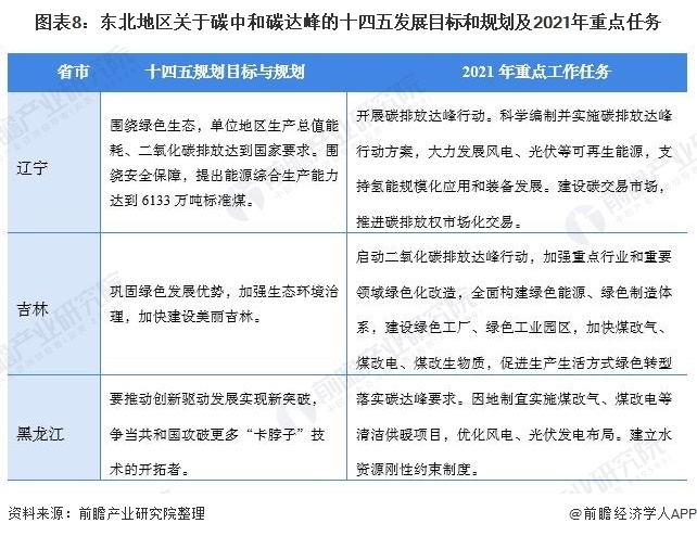 結(jié)合區(qū)域發(fā)展特性,東北地區(qū)各省十四五規(guī)劃目標和2021年重點工作任務(wù)中主要以發(fā)展能源替代和建設(shè)綠色工業(yè)園區(qū)為主。