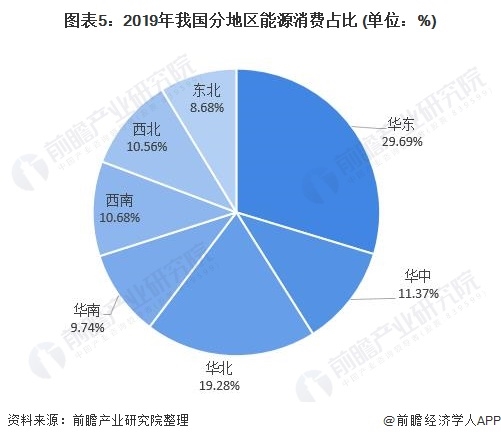 但經(jīng)濟發(fā)達的背后意味著高占比的能源消耗,根據(jù)2020年國家能源統(tǒng)計年鑒所披露的相關(guān)信息,我國2019年華東地區(qū)總能源消費占比達29.69%,是我國七大地區(qū)中能源消費量最多的地區(qū)。