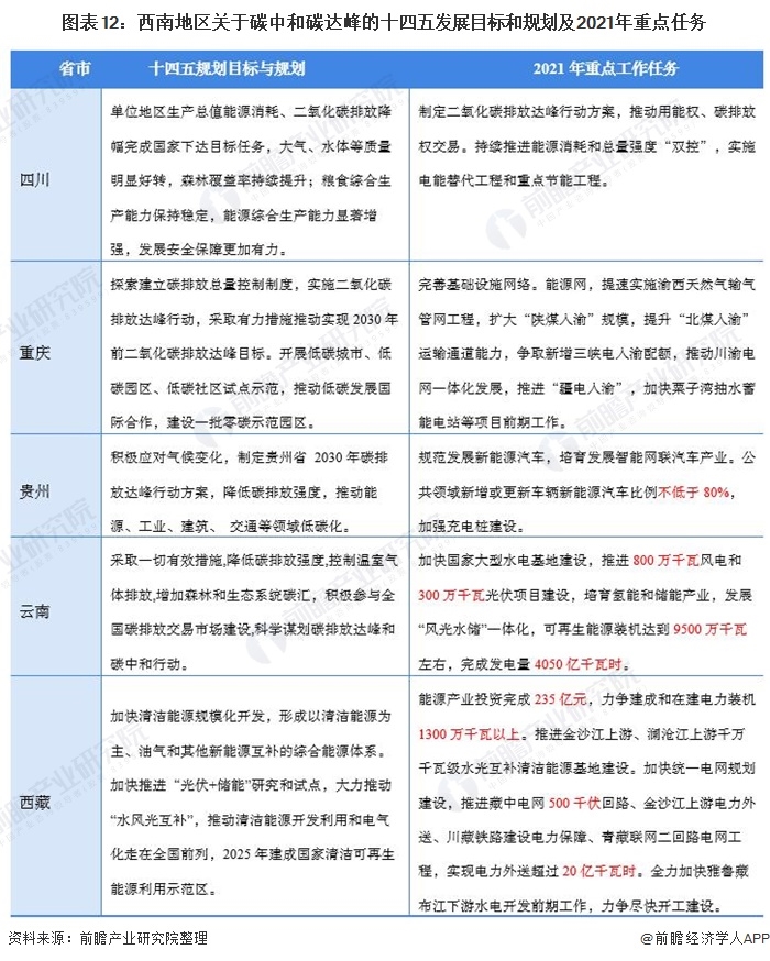 西南地區(qū)包括重慶市、四川省、貴州省、云南省、西藏自治區(qū)共五個省市區(qū)。西南地區(qū)位處于長江中上游,覆蓋云貴高原和青藏高原南部,在發(fā)展水力發(fā)電和光伏發(fā)電以及風力發(fā)電有較好的自然條件。在西南地區(qū)各省政府在十四五規(guī)劃目標和2021年重點工作任務(wù)也主要圍繞著水力發(fā)電和風電等新能源發(fā)電項目為主。其中云南和西藏等省份更是在2021年工作任務(wù)中直接提出了相關(guān)項目建設(shè)要求和目標。