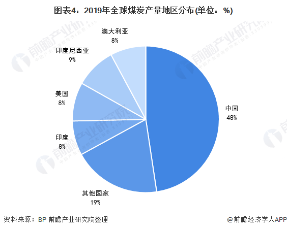 而我國的煤炭資源相當(dāng)豐富,據(jù)《BP世界能源統(tǒng)計年鑒2020》最新公布數(shù)據(jù)顯示,2019年全球煤炭產(chǎn)量排名前十位的國家分別為:中國、印度、美國、印度尼西亞、澳大利亞、俄羅斯、南非、德國、哈薩克斯坦和波蘭。其中,中國煤炭產(chǎn)量占全球總產(chǎn)量的48%。