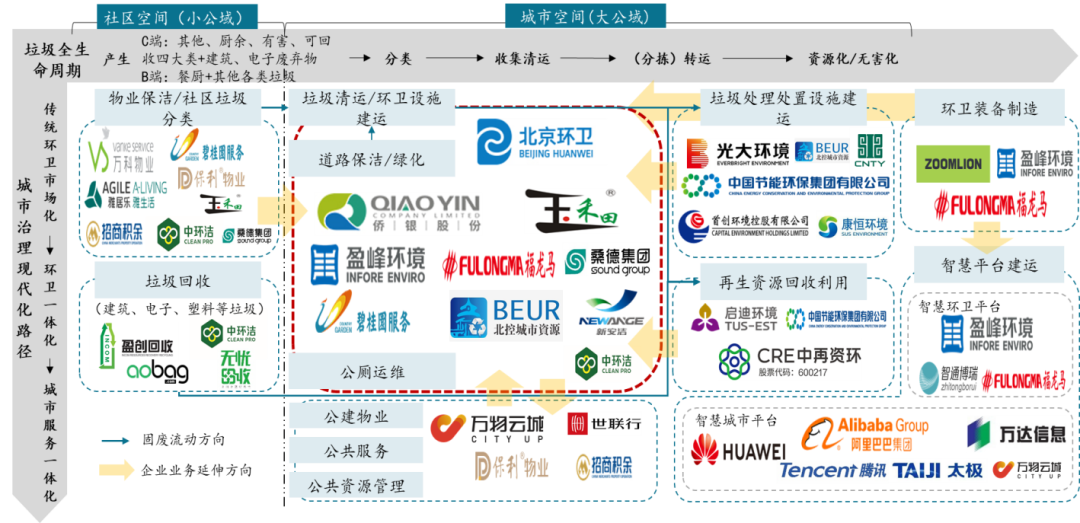 在城市治理現(xiàn)代化和垃圾全生命周期治理兩條主線作用之下,環(huán)衛(wèi)產(chǎn)業(yè)已然今非昔比,環(huán)保產(chǎn)業(yè)龍頭、環(huán)衛(wèi)裝備制造翹楚、甚至是物業(yè)領(lǐng)軍企業(yè)都在爭(zhēng)相入局,競(jìng)爭(zhēng)格局在市場(chǎng)邊界擴(kuò)大的同時(shí)正在發(fā)生震蕩式變動(dòng)。