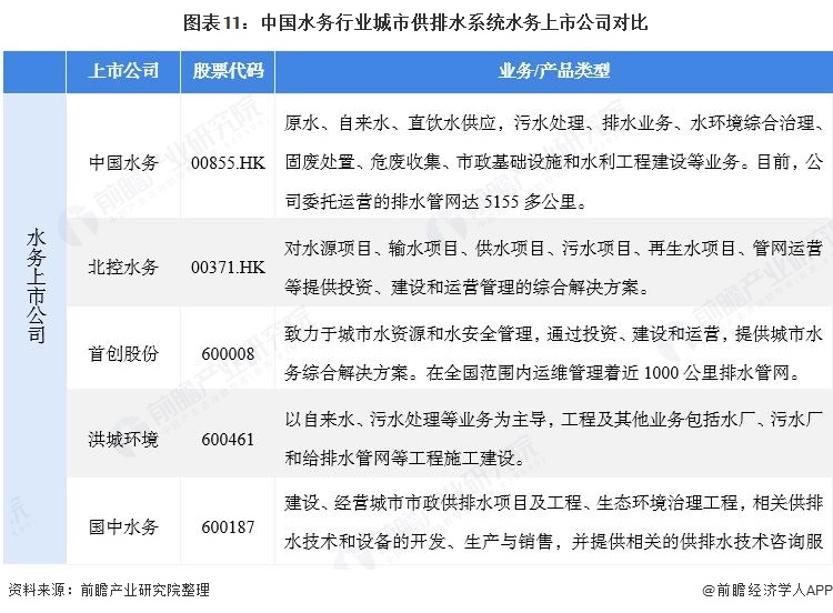 水務行業(yè)主要上市公司:目前水務行業(yè)的上市公司主要有中國水務(00855.HK)、北控水務(00371.HK)、首創(chuàng)股份(600008)、洪城環(huán)境(600461)等。