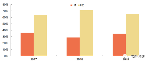 圖表11:2017-2019年垃圾發(fā)電項(xiàng)目上下半年中標(biāo)集中情況