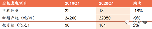 圖表9:2019年Q1-2020年Q1全國(guó)垃圾發(fā)電項(xiàng)目中標(biāo)情況