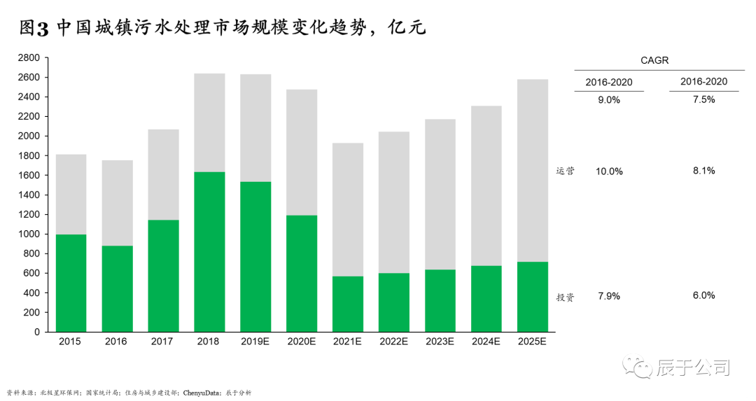 據(jù)辰于測(cè)算,“十四五”期間建制鎮(zhèn)污水處理設(shè)施投資將保持6.9%的年復(fù)合增速,總投資規(guī)模600億元以上。