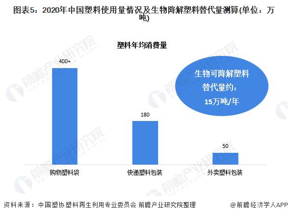 據(jù)中國塑協(xié)塑料再生利用專業(yè)委員會統(tǒng)計(jì),我國每天使用塑料袋約30億個(gè),截至2019年,塑料袋年使用量超過400萬噸。同時(shí),中國快遞塑料包裝每年消耗量約為180萬噸,外賣塑料包裝為50多萬噸。
