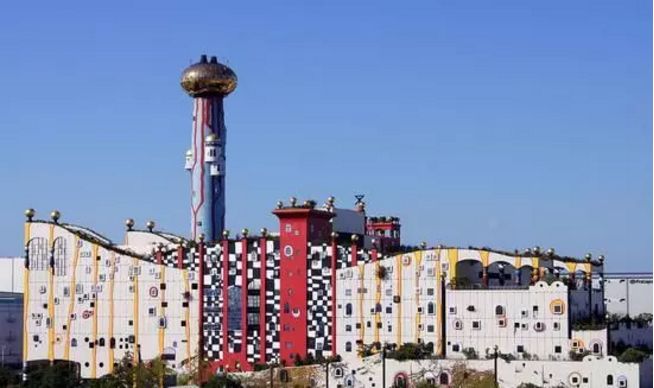 童話般的建筑外觀,歪歪扭扭的輪廓線條,外墻上還打著彩色的“補(bǔ)丁”,屋頂上種植著樹(shù)木花草……這座可愛(ài)的“怪房子”就是維也納施比特勞垃圾焚燒發(fā)電廠,施比特勞區(qū)域的一座標(biāo)志性建筑。