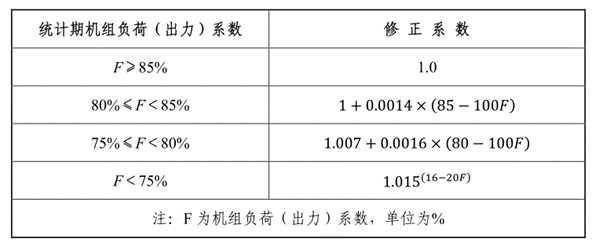 表2 常規(guī)燃煤純凝發(fā)電機組負荷(出力)系數(shù)修正系數(shù)