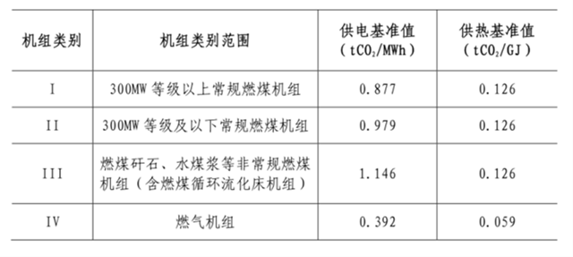 表1 2019-2020年各類別機組碳排放基準值