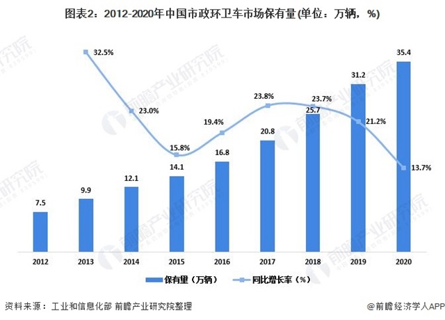截至2020年底,我國市政環(huán)衛(wèi)車市場保有量累計達到35.4萬輛,同比增長13.7%。