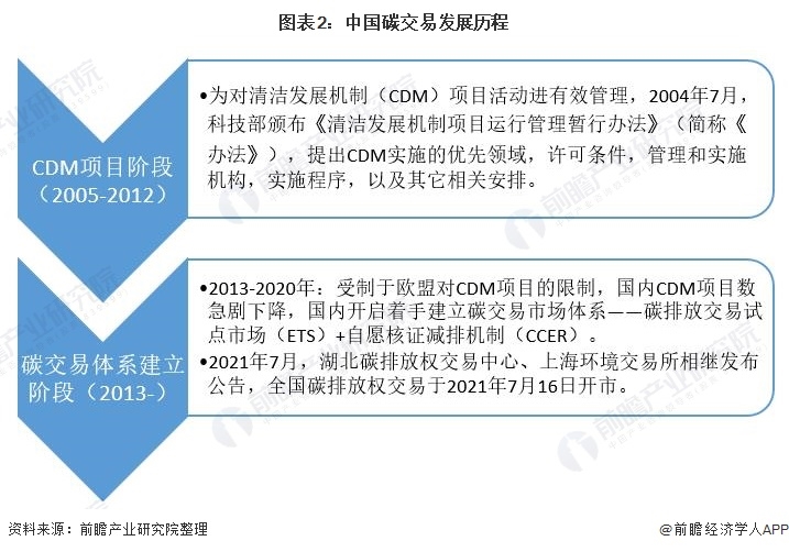 我國碳交易體系建立階段包括碳交易試點與全國統(tǒng)一碳排放權(quán)交易兩個階段。2013年起,我國借鑒歐盟碳交易機(jī)制(EU-ETS),在北京、天津、上海、湖北、廣東、深圳、重慶、福建、四川九個省市開啟區(qū)域碳排放交易試點。2021年7月16日,全國碳排放權(quán)交易開市。