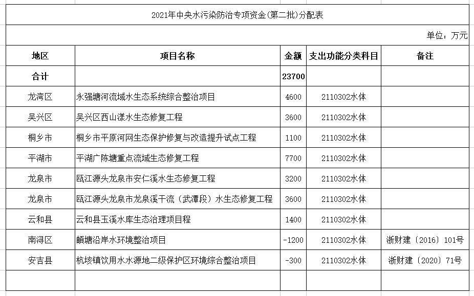 2.2021年中央水污染防治資金(第二批)分配表