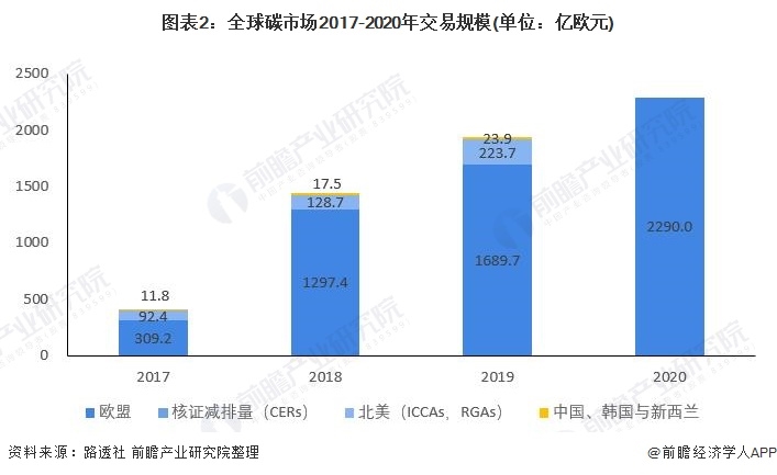 目前,全球范圍內(nèi)主要碳交易體系包括歐盟碳市場、美國區(qū)域溫室氣體減排倡議(RGGI)、韓國與新西蘭碳市場等。根據(jù)路透社數(shù)據(jù),2019年,全球碳市場交易均價(jià)約為22歐元/噸。
