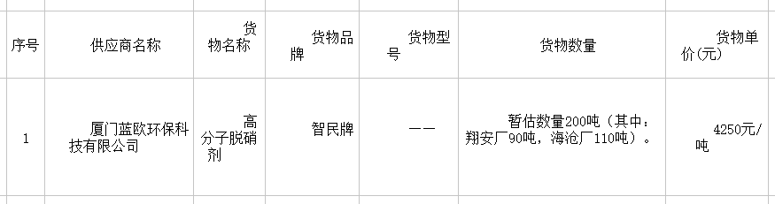 廈門公物-公開招標(biāo)-GW2021-QY190C-高分子脫硝劑采購-中標(biāo)候選人公示