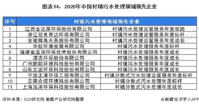 圖表14:2020年中國村鎮(zhèn)污水處理領域領先企業(yè)