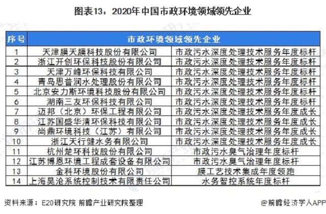 圖表13:2020年中國市政環(huán)境領域領先企業(yè)