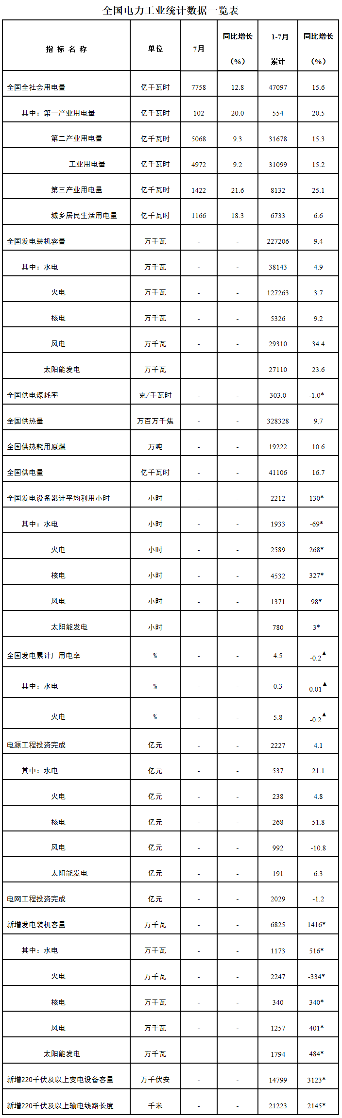 1-7月份,全國新增風(fēng)電裝機(jī)1257萬千瓦,同比增長401萬千瓦;太陽能發(fā)電裝機(jī)1794萬千瓦,同比增長484萬千瓦。