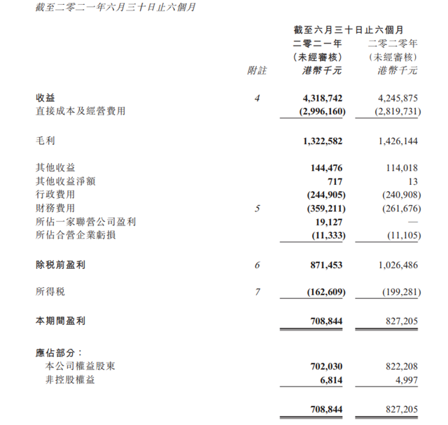 2021年上半年,公司收益為港幣43.18億元,較去年同期增長2%,除利息、稅項(xiàng)、折舊及攤銷前盈利為港幣15.91億元,較去年同期增長2%本公司權(quán)益股東應(yīng)占盈利為港幣70.2億元,較去年同期減少15%。